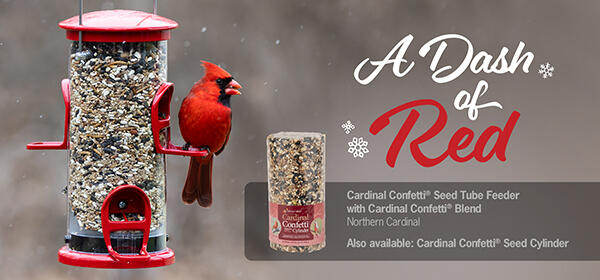 Whether your yard is covered with a beautiful blanket of snow or it's just a drab winter's day, a visit from a Northern Cardinal always brightens the mood. Offer our exclusive Cardinal Confetti® Blend formulated to attract cardinals, Pyrrhuloxia and a variety of other birds. It's loaded with high-fat seeds, Bark Butter® Bits, dried mealworms and peanuts. Shop now for foods and feeders from our Cardinal Collection and get the party started!